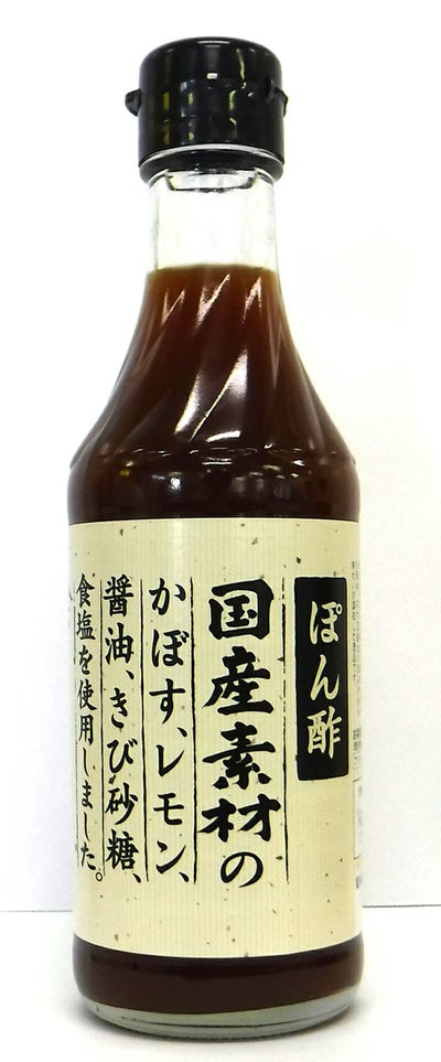 大分県産の小麦、丸大豆を原料とした本醸造醤油に醸造酢は使用せず、国産のかぼす、レモンの果汁のみをたっぷり約40%使用し、また北海道産の昆布、焼津産のかつお節を使用したダシを合わせ味を整えました。