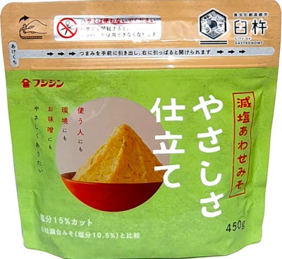 「ガゼット袋は開封後の保管がし難い」、「カップは量が少なくなっても場所をとるし、蓋も外れ易い」を解消するためにガゼット袋にジップを付けました。 ”毎日おいしく減塩のお味噌汁を”のコンセプトの元、商品設計を行った九州ならではの、やや淡色で、麹の甘さの残る減塩味噌です。(※減塩率15%以上) 塩分を気にされている方、甘めの味わいがお好みの方にお勧めできるお味噌です。