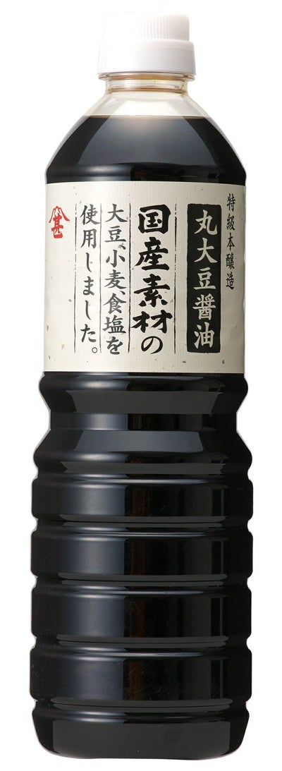 国産素材の大豆、小麦、食塩を使用して製造した丸大豆醤油です。